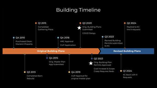 The blue section below outlines the process and where we stand on our current building. We are working through the updated requests from King County for the permits and expect to have them back and signed off in time for breaking ground mid 2025.